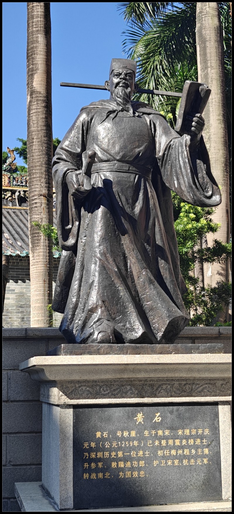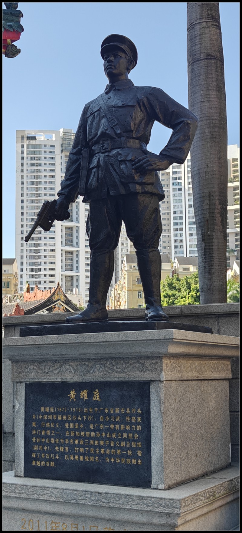 下沙村有黄氏宗祠,估计多属黄姓与我同宗。广场大门立有两尊雕像,一是南宋时期的黄石,另外一个手持短枪的辛亥武将黄耀庭。