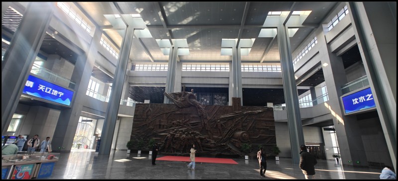 会议最后活动参观,可以选择辽宁省博物馆,中国工业博物馆等地,我选择了工业馆,很想看看“共和国长子”的过去历史。工业博物馆在沈阳铁西,就在原来的铸造厂旧址上建造出来的。进门铸铜雕塑画,二十多米长短,吨位数具体没有记住,反正厚重感足足。