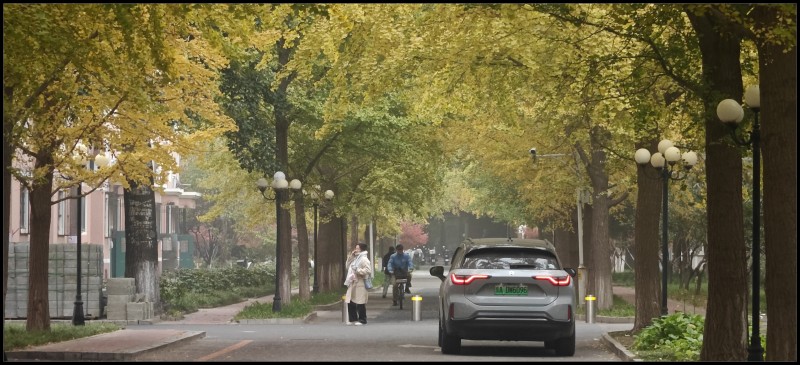 九点的课,八点多就到了。停车看景,一片金黄,这是帝都深秋,最美的时刻。今天有雾霾,朦朦胧胧,如果是前天那样的是个大太阳,估计会更美。