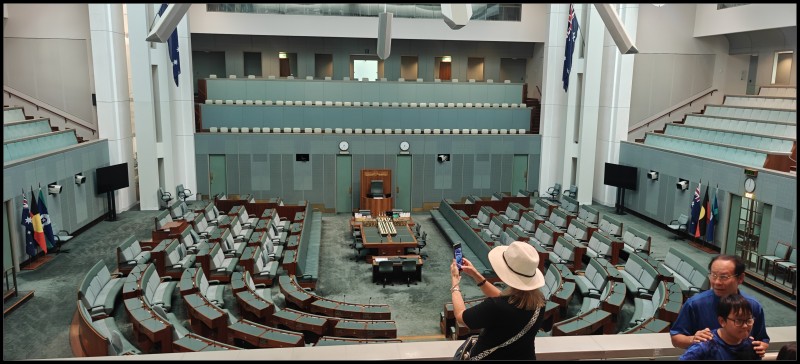 18天后,12月28日下午,我们来到蓝天日丽的澳大利亚首都堪培拉,参观著名的澳大利亚国会大厦。