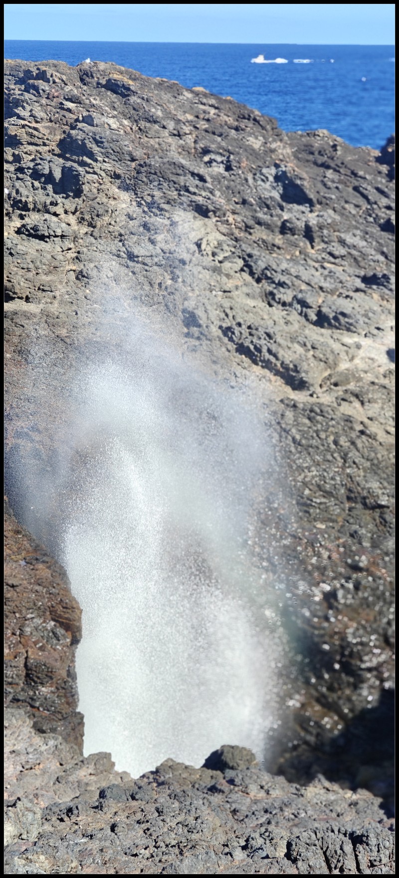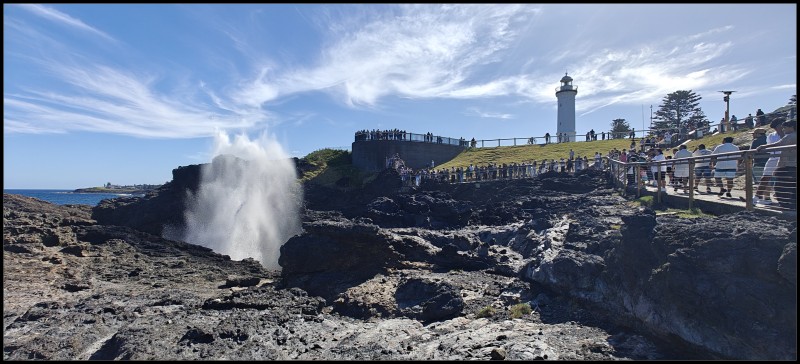 下午四点,我们的汽车来到新南威尔士州基亚马镇,观看这里拥有的海蚀洞奇观—基亚马喷水洞(Kiama Blowhole),这是因海浪冲击岩洞,形成高压水柱喷发,最高喷射可达20米。