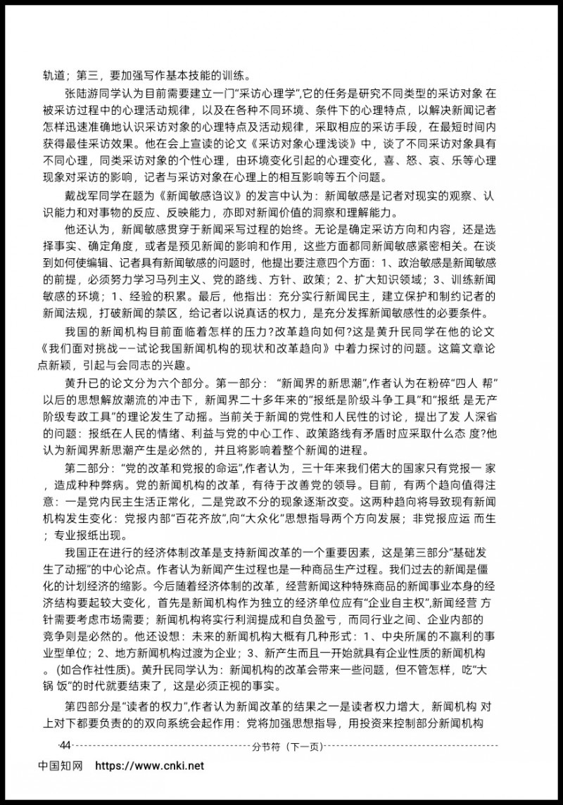 1980年发言算是对之前五年记者生涯的一个理性总结。之后到了1995年开始的媒介产业化研究,方向路径是一样的,只是时间跨度更大,涉及的媒体更广。追根溯源,研究起点还是在那个1980年发言。
