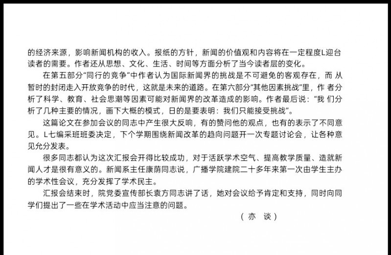 还是回到四十六年前的那个研讨会。如文内所述,这是七七编采举办的第一届学术研讨会,也是唯一的一次学术研讨会,六人发言居然有两天,可见当时大家都很认真。我的发言也相当认真,做了五年的报社记者,重新梳理新闻学理论与实践,我在标题套用了汤恩比那个“挑战与应战”的历史研究思路,六个部分洋洋洒洒说了近两个小时。如后来做简报的亦谈所言,引发了很大的反应。