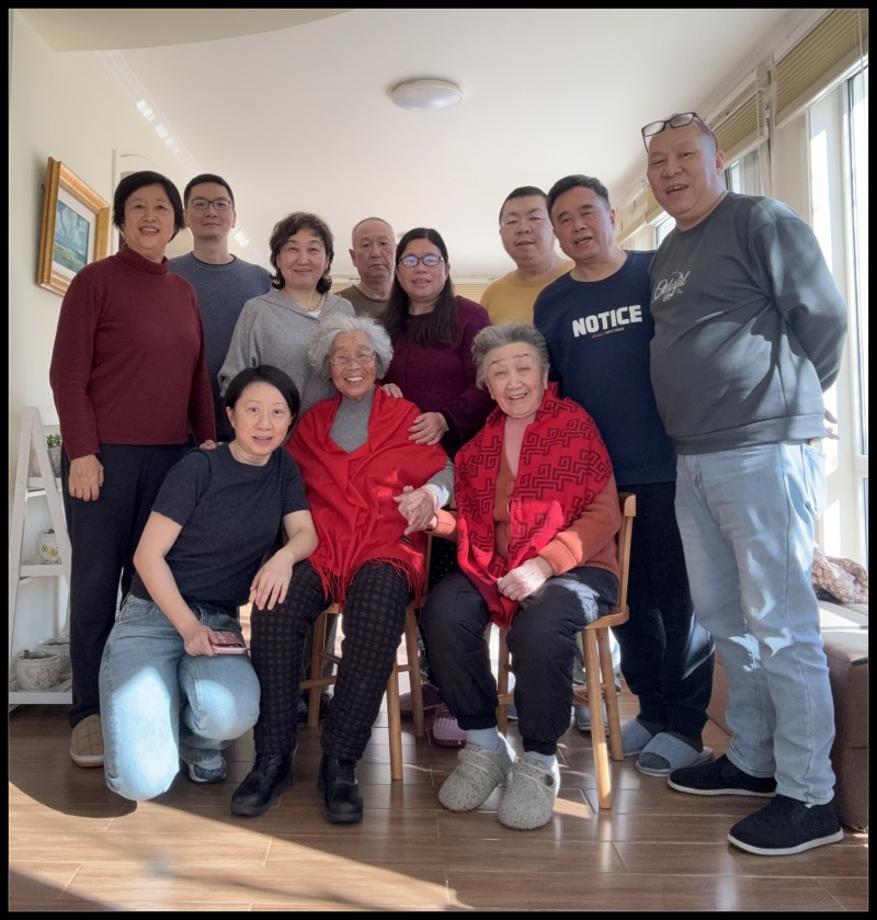 按照习俗,大年初一家庭聚,所以,来了都是亲戚朋友,吃喝之后就是大团圆全家福。