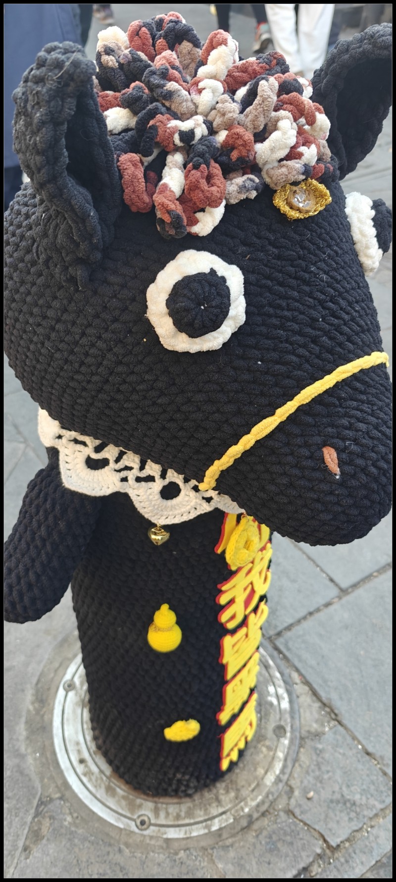 逛大街,见减速,见清场,还见黑衣马。人潮滚滚去哪?机器人+人,扎金花敲银碗。管你上下跳梁,管你左右摇摆,排队依次进店来,拜神求财!