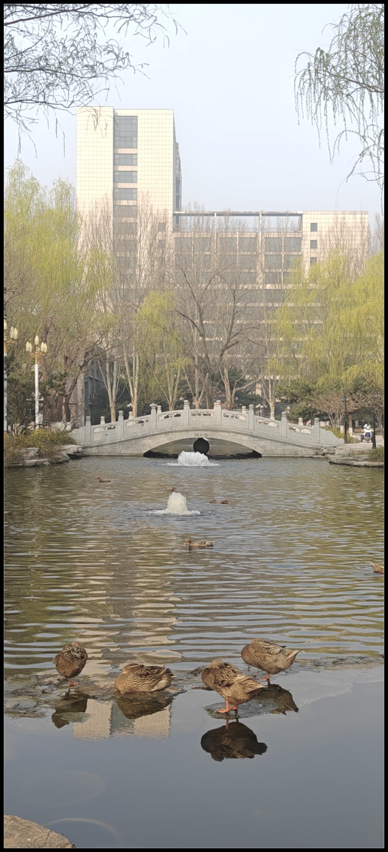 周三限号,干脆坐地铁去大学。骑共享单车到永安里,直达传大南门,进门就见到主楼前面有大车,搞绿化的,顺左手看见那个被学生诟病的“琼台楼阁“,其实也就是一个中水池,校方为了平息舆情,说是艺术表演的实验基地。编吧。