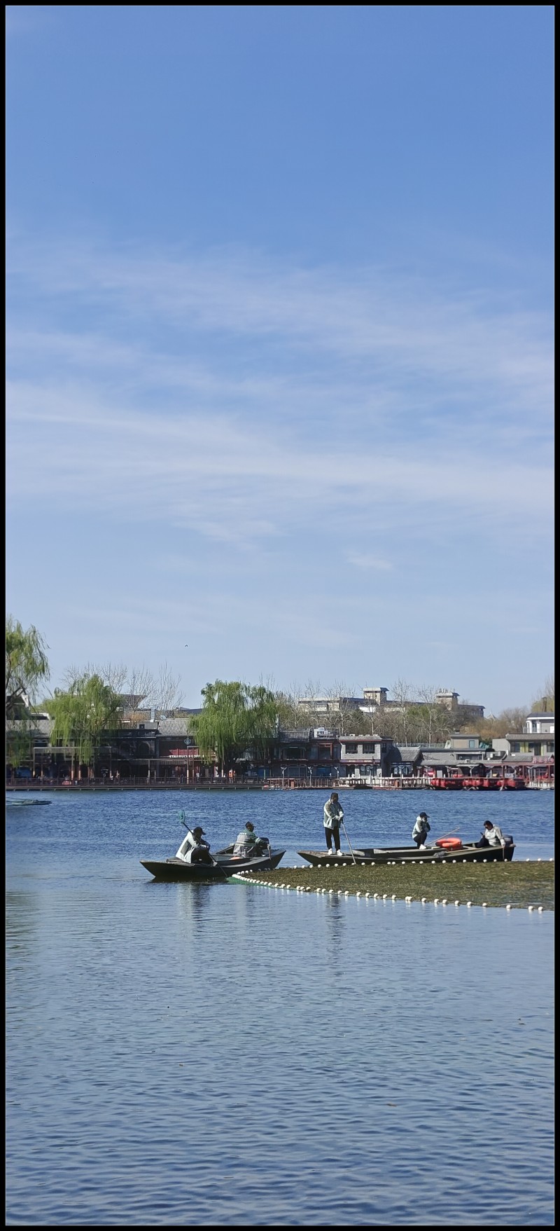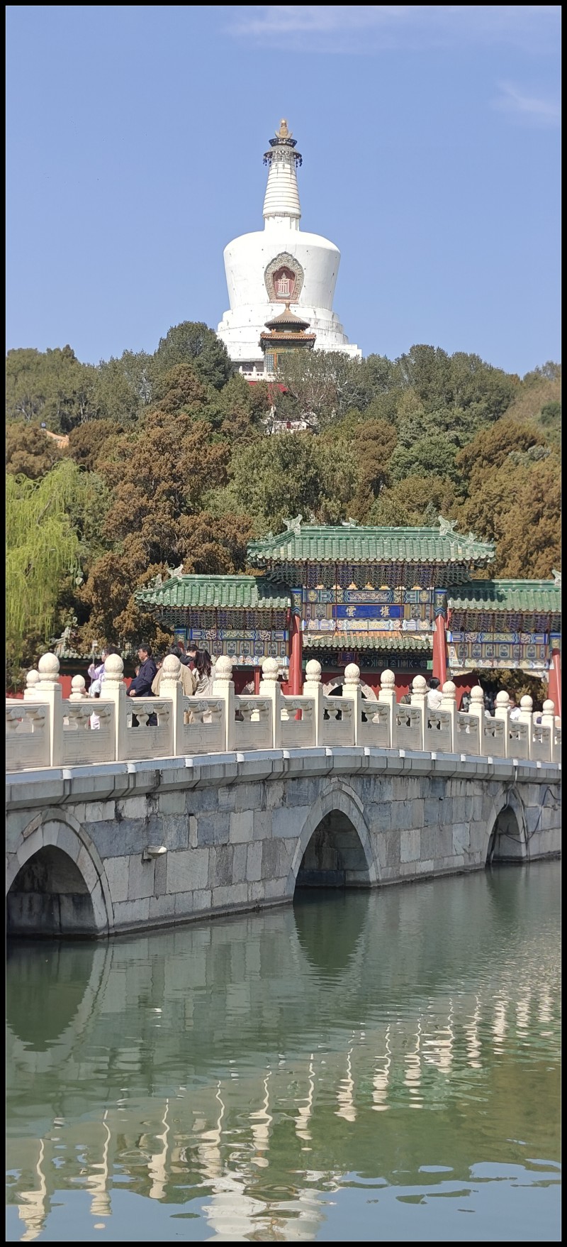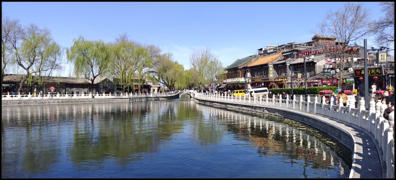 这次春游,继续上回的路线,从钟鼓楼出发,打一个卡,然后从烟袋斜街进,面对荷花市场,过行人道入北海公园。入园需缴费,我免除,学生十元减半。