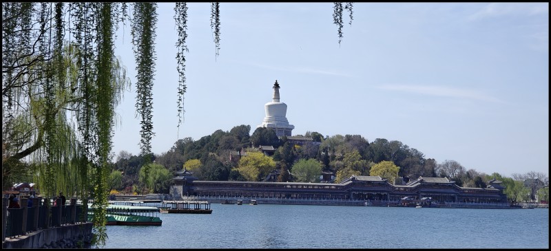 看北海,登白塔,然后进入团城。北海公园,只要天气好,走哪都能出大片。我们一到湖边,看那蓝天,白塔,垂柳,耳边就有那首五十年代的歌曲,让我们荡起双桨。双桨早就没有了,以前有,我和老婆划过,走到湖中央就累的不行,现在都是蹬腿式的鸭子艇。我问学生蹬吗?大家摇头,只是哼哼唧唧,荡起双桨。
