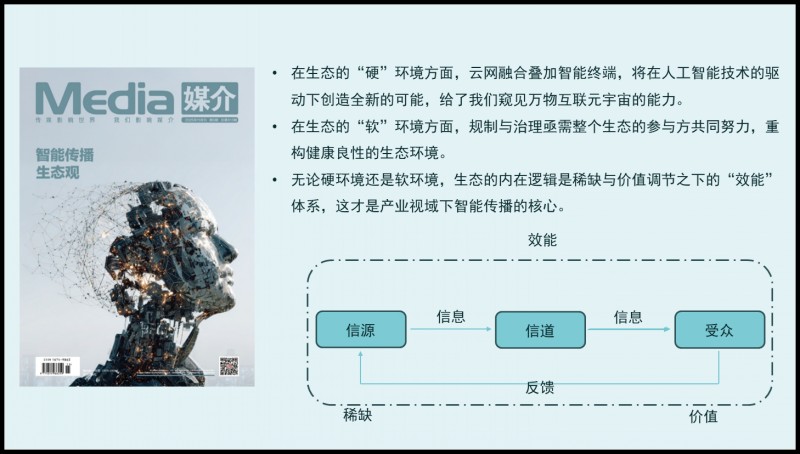 最后一个观点,生态。四个观点与过往的研究有什么关联?之前准备了前年的上海发言,关于智能媒体的四个视座,但是,翻阅到2021年给传媒巨人做过的PPT,觉得思路更加完整,于是,做了链接。