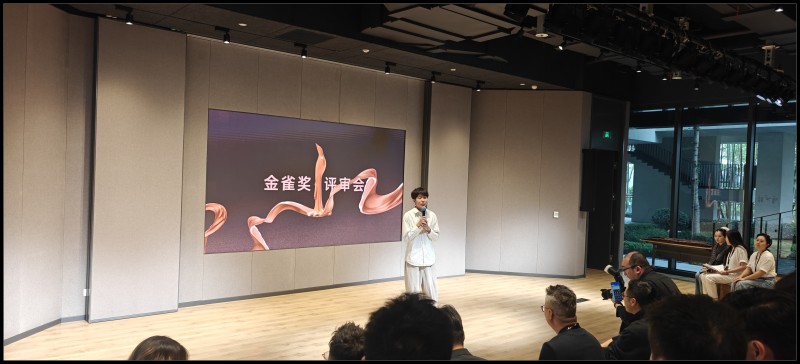 周四中午飞抵杭州,放下行李直接搭乘大巴去湖畔创研中心,也就是马云搞的湖畔大学。下午有金雀奖的线下评奖,周五有颁奖。