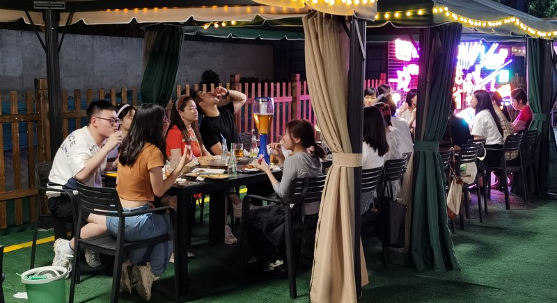 所谓的烧烤场,国家广告园区办公楼下。原来是一个临时停车场,后来响应政府的夜市号召,余哥打了个报告,烧烤场也就搞起来了,上次来过一次,感觉不错。这次算是第二次。