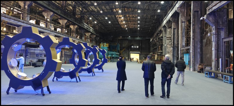 会议最后活动参观,可以选择辽宁省博物馆,中国工业博物馆等地,我选择了工业馆,很想看看“共和国长子”的过去历史。工业博物馆在沈阳铁西,就在原来的铸造厂旧址上建造出来的。进门铸铜雕塑画,二十多米长短,吨位数具体没有记住,反正厚重感足足。