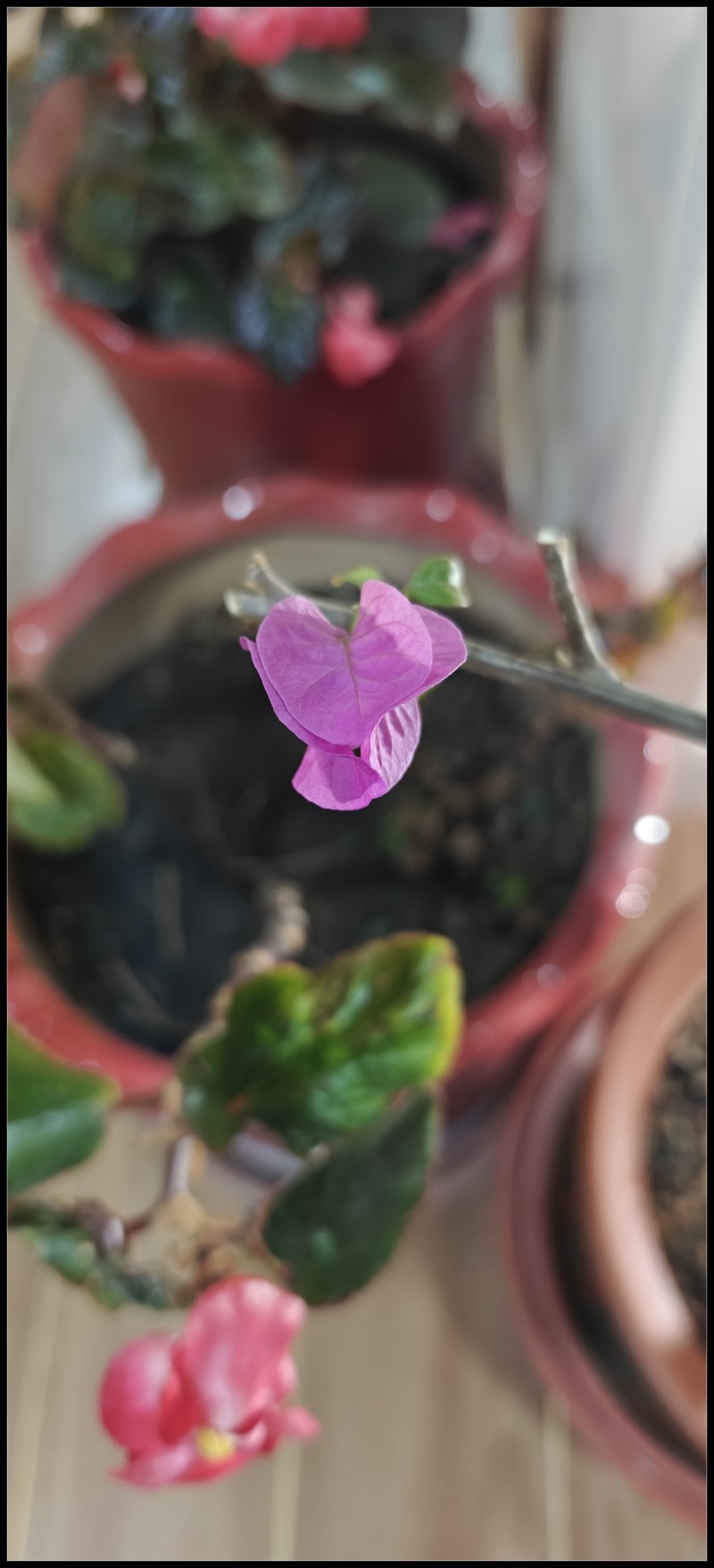 回王府。已经有两周没有回去。开门入屋,瞥见一株三角梅。残败的海棠中间,干枝丫叉之中独开的一朵。南美引进的三角梅在广州,那就是路边花,成行成团围着道路弯绕盘缠,远看就是一条条彩带。很普通的路边花带到北京就显得很金贵。家里只有一盘,冬天一到叶落枝残。老婆很爱惜地把它搬进屋,边浇水边说,养养看能不能活。我都忘记了这盘三角梅,经过这几天奇寒,居然活着且还开花,虽然只有一朵。