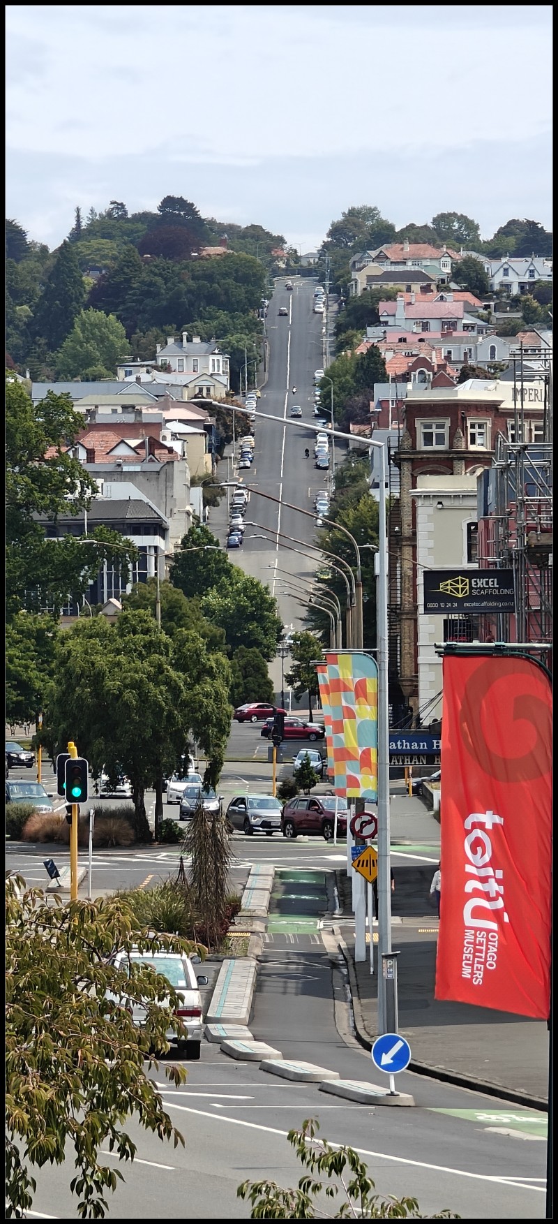 中午进入但尼丁市,带有彭斯雕塑的大教堂百年车站以及巨大的彩绘构成老城底色。此处鲍德温大街是吉尼斯世界纪录认证的"世界最陡街道",登顶打卡之后途经摩拉基海滩看数千万年前形成的“大圆石“ ,南岛之游最后一个打卡。