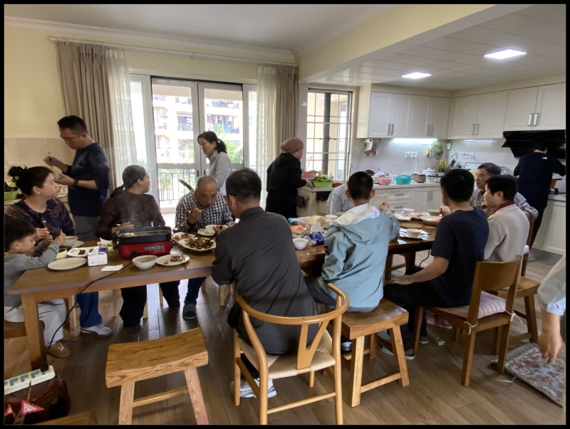 初六星河湾黄家聚。马年开年牛丸鱼丸火锅餐。餐后发利市,这时孙辈们最期待的时刻。