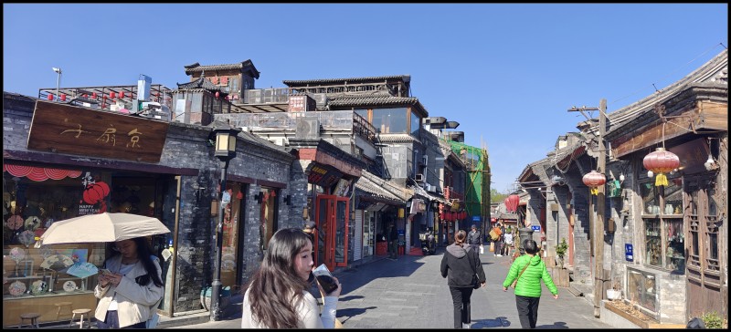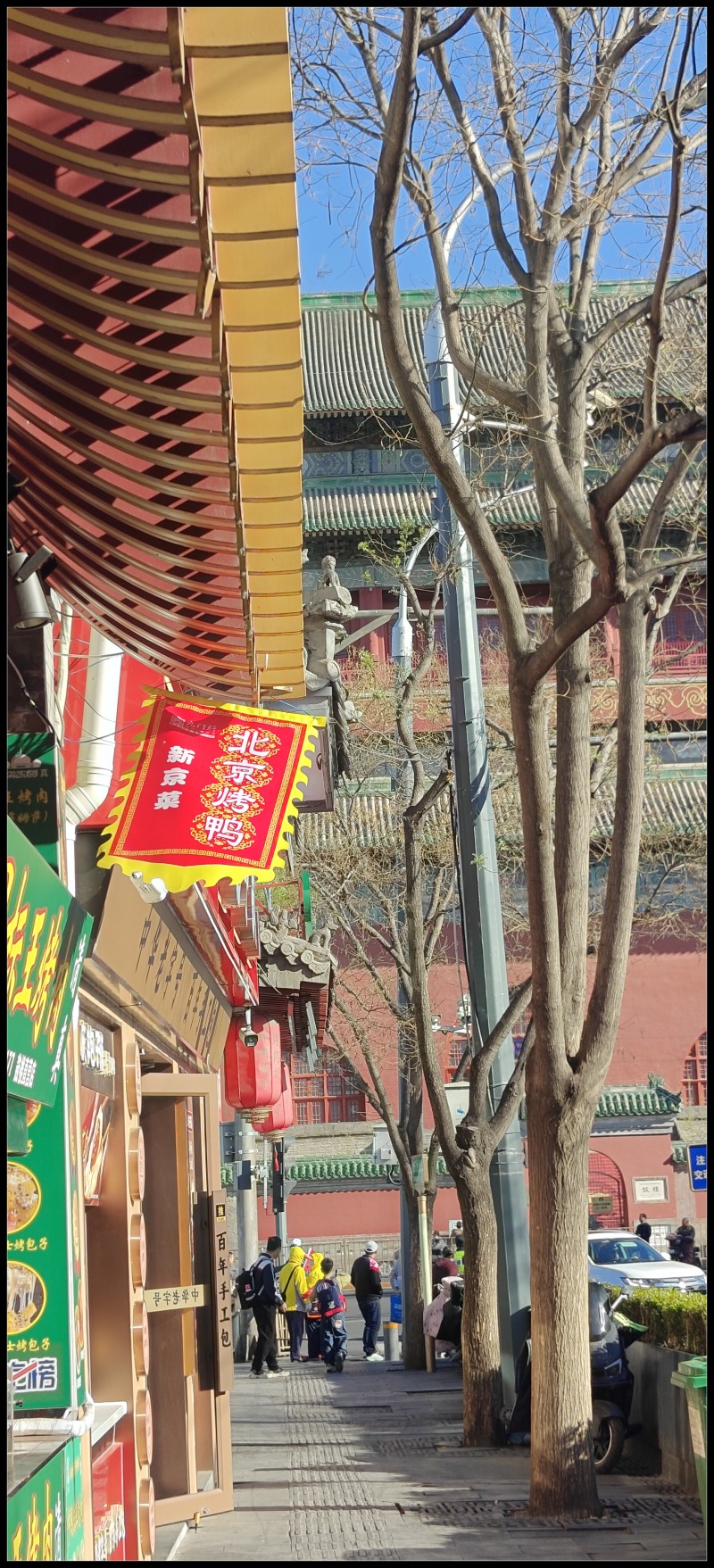 这次春游,继续上回的路线,从钟鼓楼出发,打一个卡,然后从烟袋斜街进,面对荷花市场,过行人道入北海公园。入园需缴费,我免除,学生十元减半。